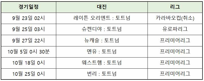 칼버르트윈 / 로드리게스 / 히샬리. 토트넘 홋스퍼 fc 경기일정/결과 (잉글랜드 프리미어리그 2020/2021) 토트넘 경기일정 토트넘 마린 오는 한국시간 1월 11일 월요일 새벽 02:00에 토트넘 마린 경기가 마린의 홈인 디 아리바 스타디움에서 열릴 예정이다. ~~ 채택해드립니당 토트넘의 9/10월,바쁜 일정입니다. 가격은 액면가보다 높거나 낮게 책정될 수 있습니다.